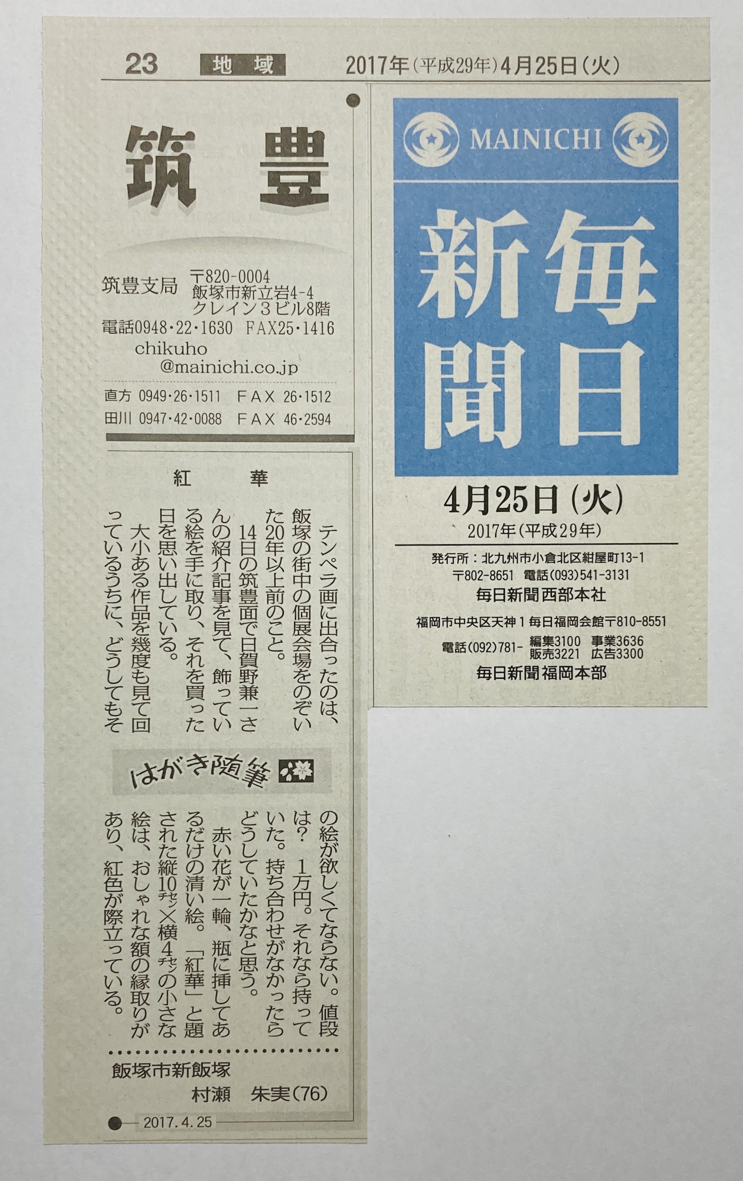 読売新聞筑豊版、福岡版に掲載いただきました。