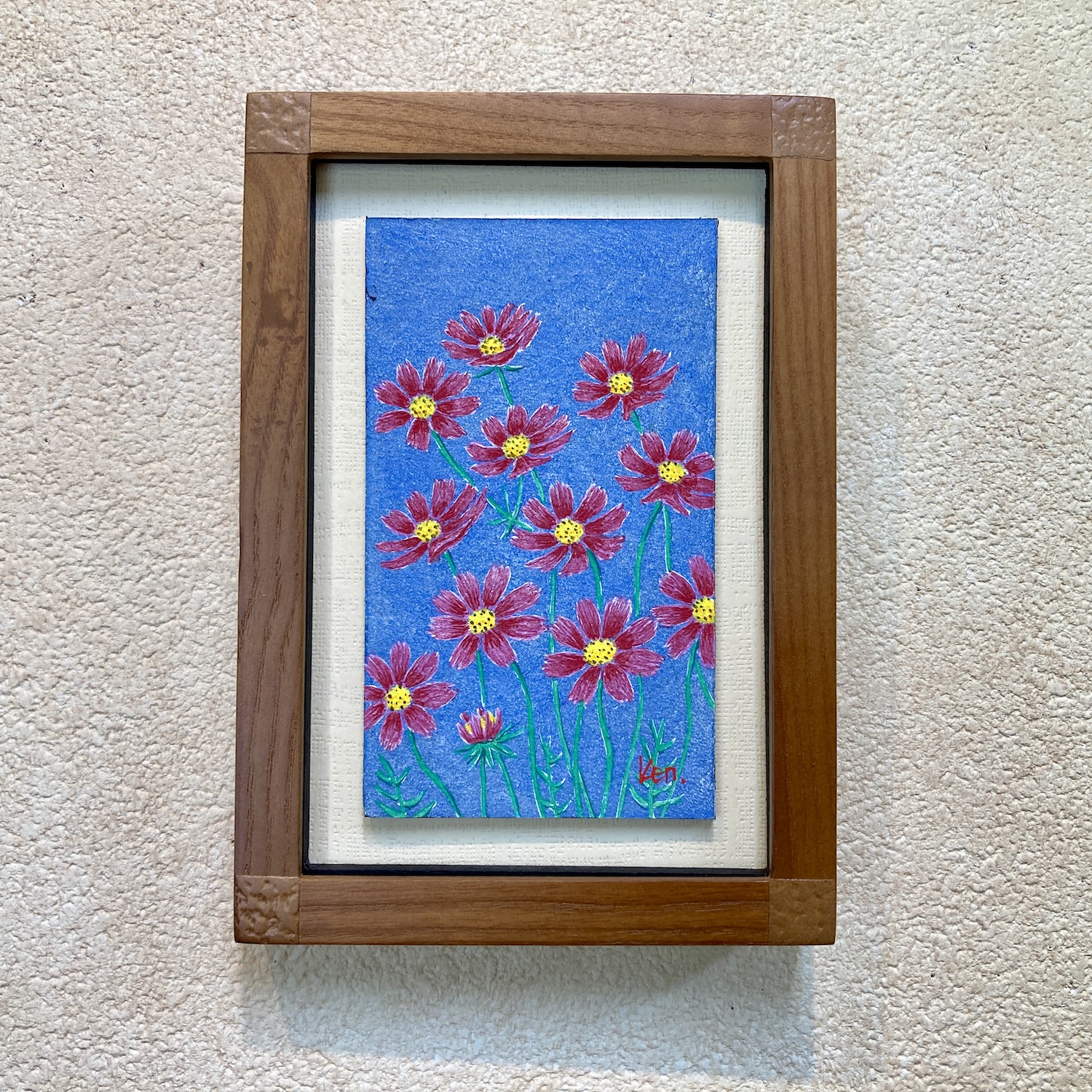 「秋コスモス」 竹にテンペラ 今すぐ注文できます >>