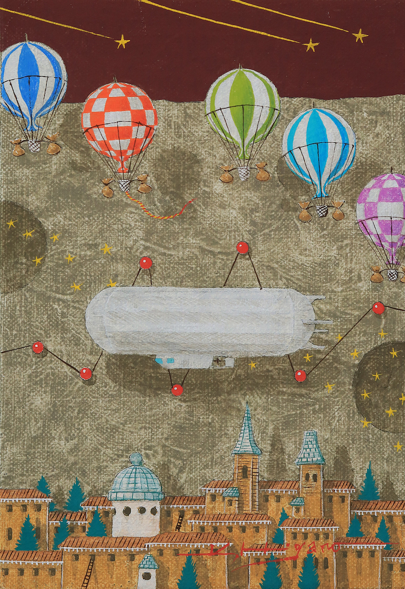 その下には白い飛行船、
