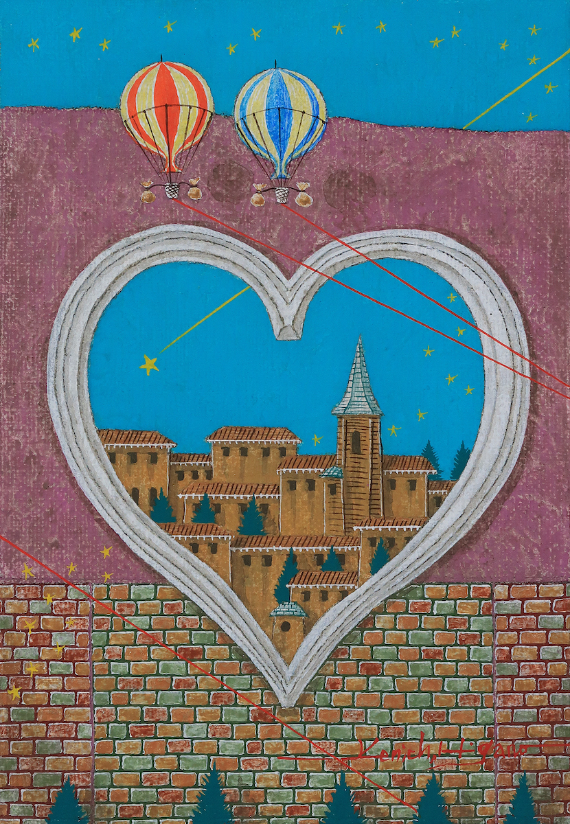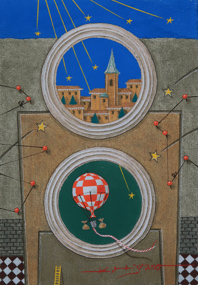 赤チェック柄の気球とともに、