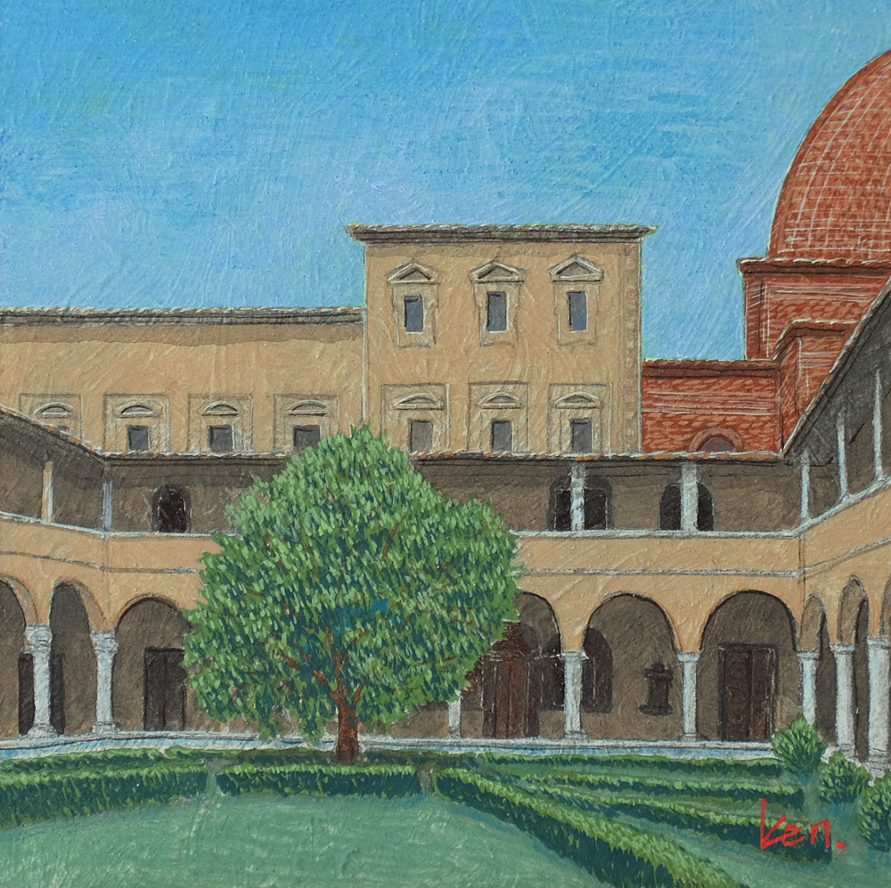 メディチ家の回廊庭園 板絵(11.4x11.4cm)